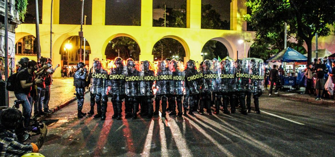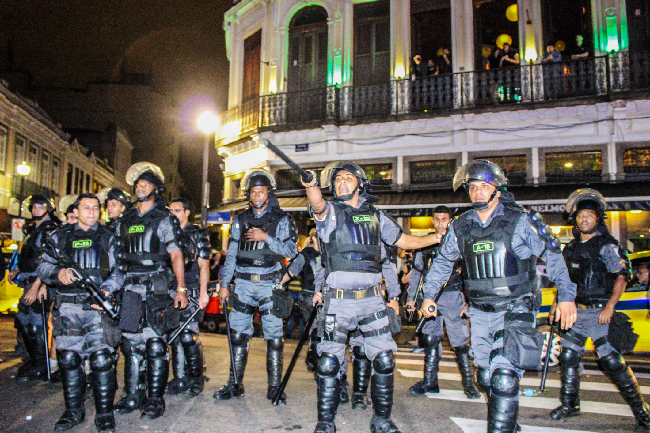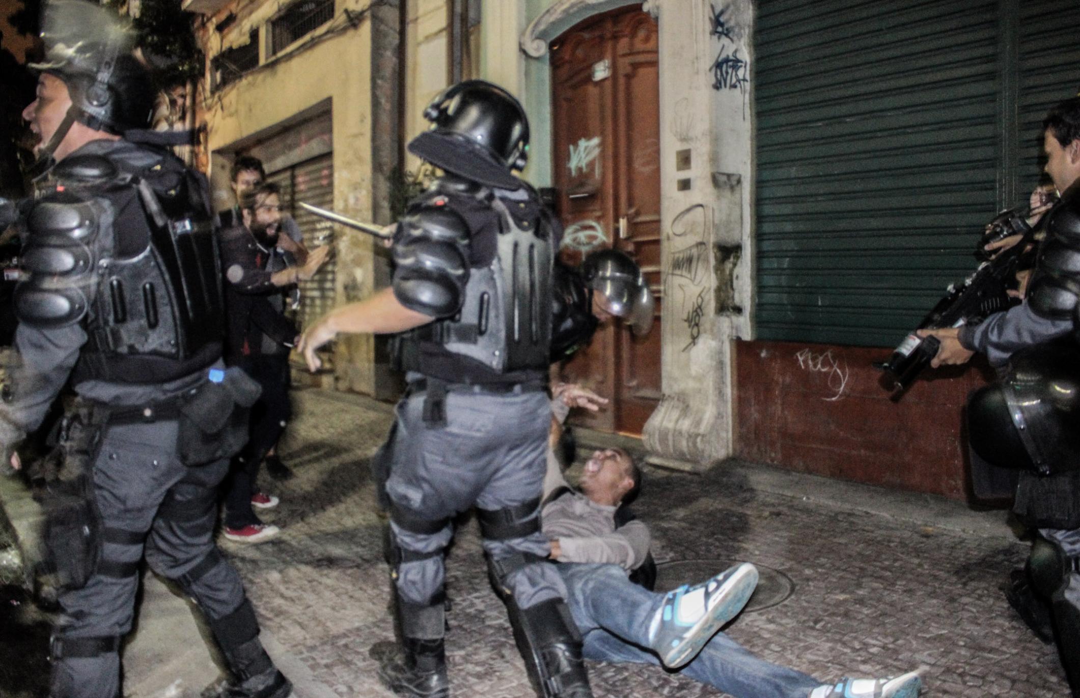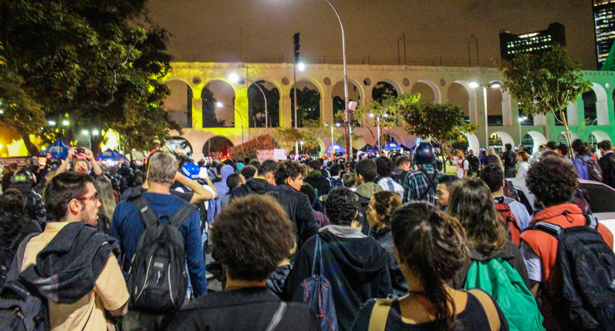 Chegando à Lapa, xs manifestantes deram várias voltas ao redor dos principais bares, cantando gritos de protestos e interagindo com os turistas. A polícia, por sua vez, além das revistas, passou a borrifar spray de pimenta em meio aos manifestantes, de forma que não percebessem o gesto, mas sentissem seus efeitos. Diante do aumento da tensão, a polícia efetuou mais uma série de detenções, muitas por desacato. Nesse cenário, um manifestante foi brutalmente agredido e derrubado no chão, enquanto um cadeirante, que passava pelo local e resolveu aderir ao protesto, recebeu um jato de Spray de pimenta diretamente em seu rosto. Como se não bastasse, a polícia ainda usou bombas de efeito moral e balas de borracha.