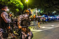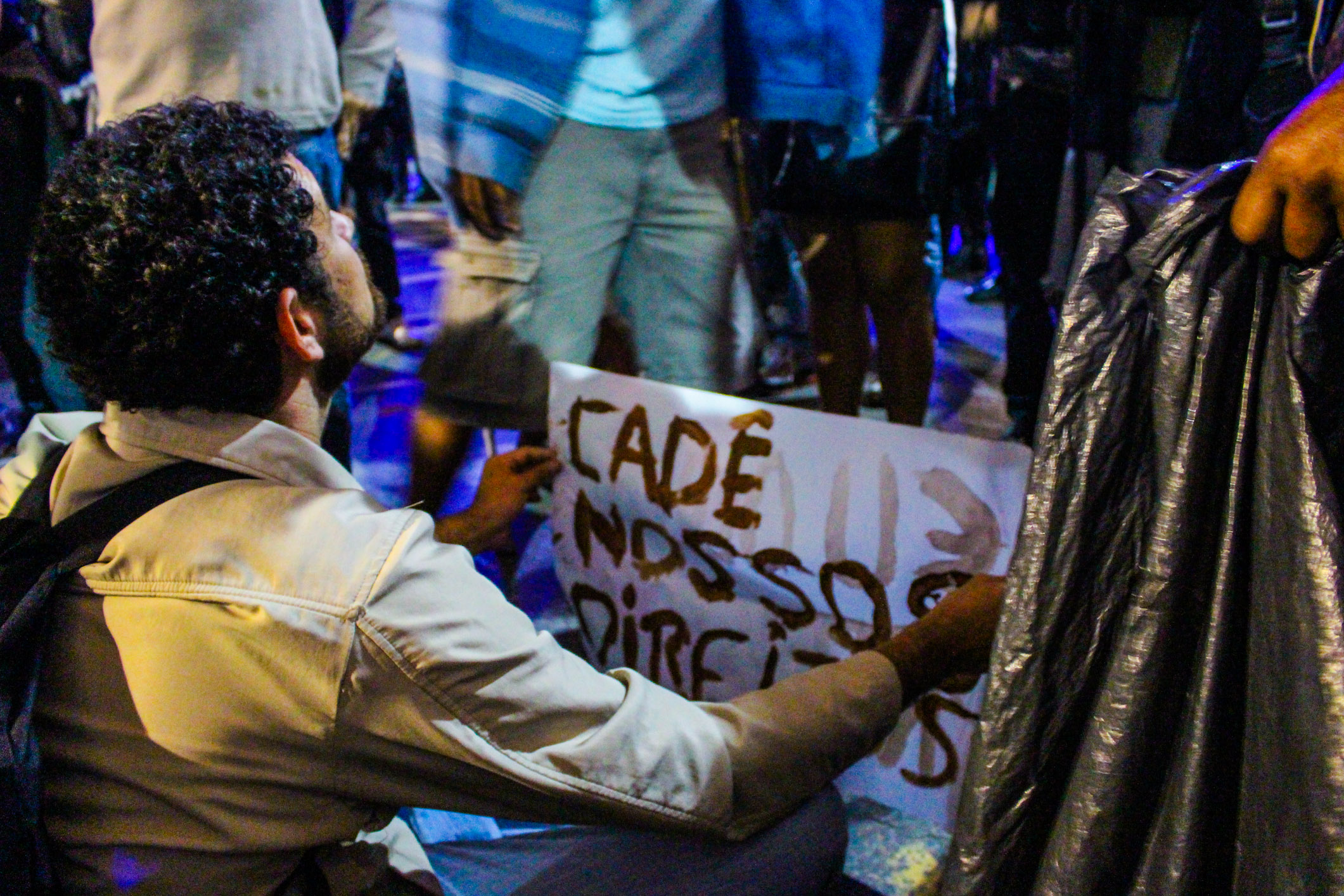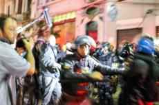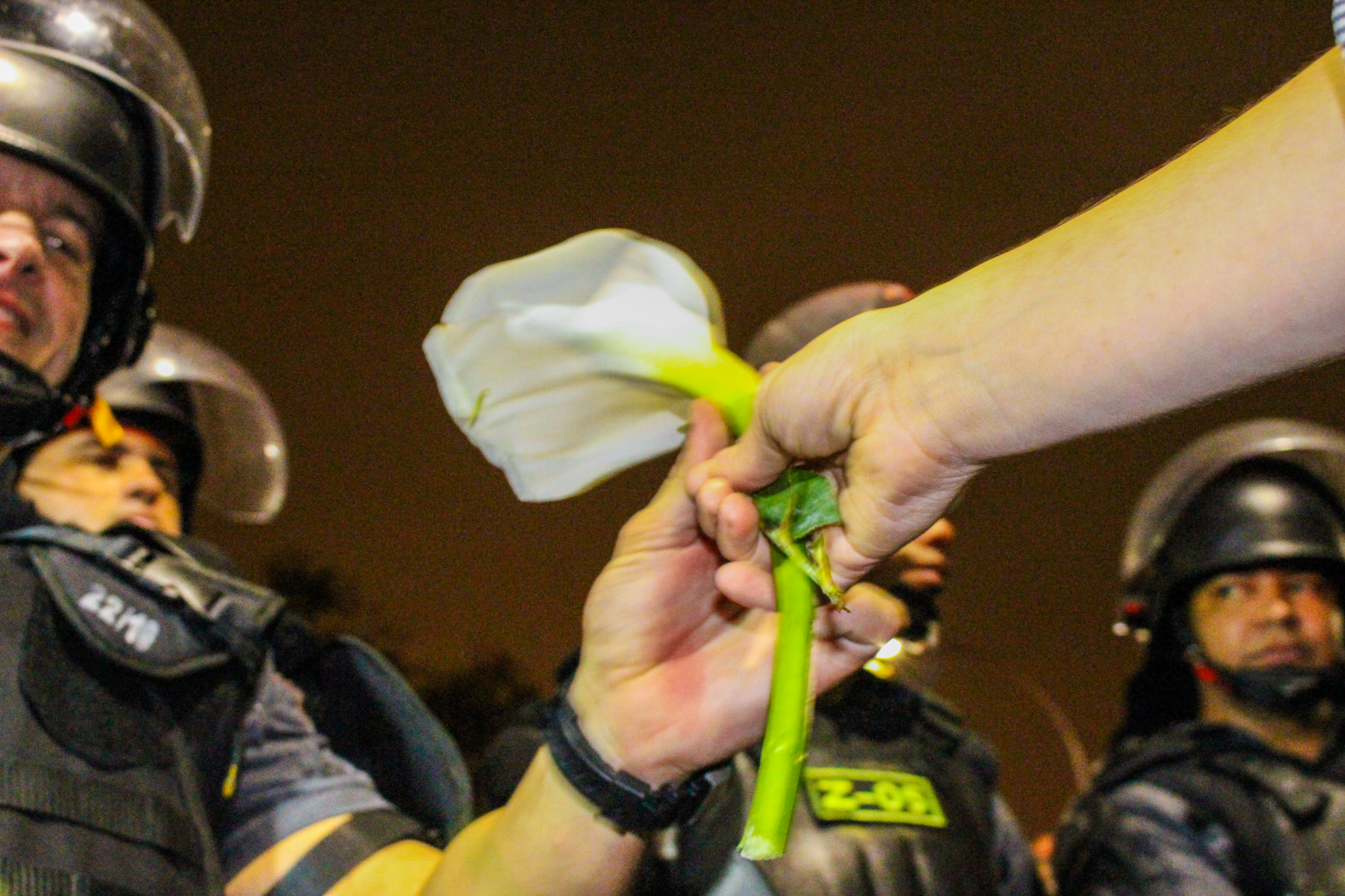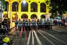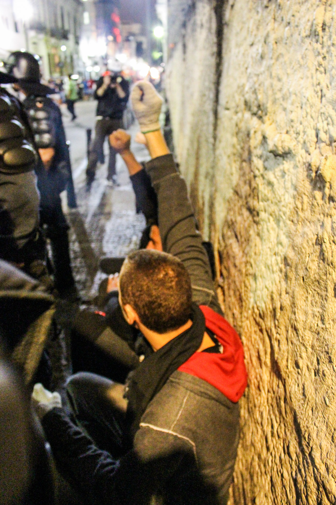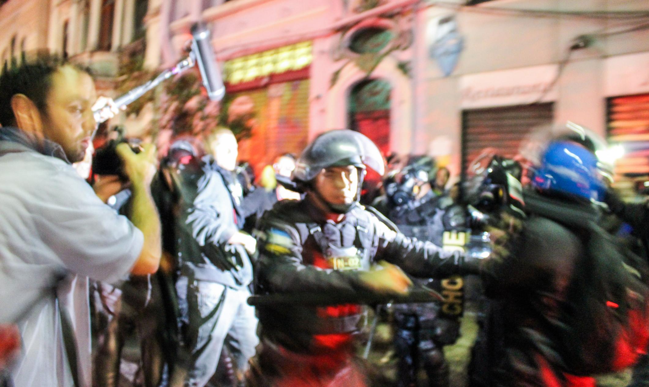 Chegando à Lapa, xs manifestantes deram várias voltas ao redor dos principais bares, cantando gritos de protestos e interagindo com os turistas. A polícia, por sua vez, além das revistas, passou a borrifar spray de pimenta em meio aos manifestantes, de forma que não percebessem o gesto, mas sentissem seus efeitos. Diante do aumento da tensão, a polícia efetuou mais uma série de detenções, muitas por desacato. Nesse cenário, um manifestante foi brutalmente agredido e derrubado no chão, enquanto um cadeirante, que passava pelo local e resolveu aderir ao protesto, recebeu um jato de Spray de pimenta diretamente em seu rosto. Como se não bastasse, a polícia ainda usou bombas de efeito moral e balas de borracha.