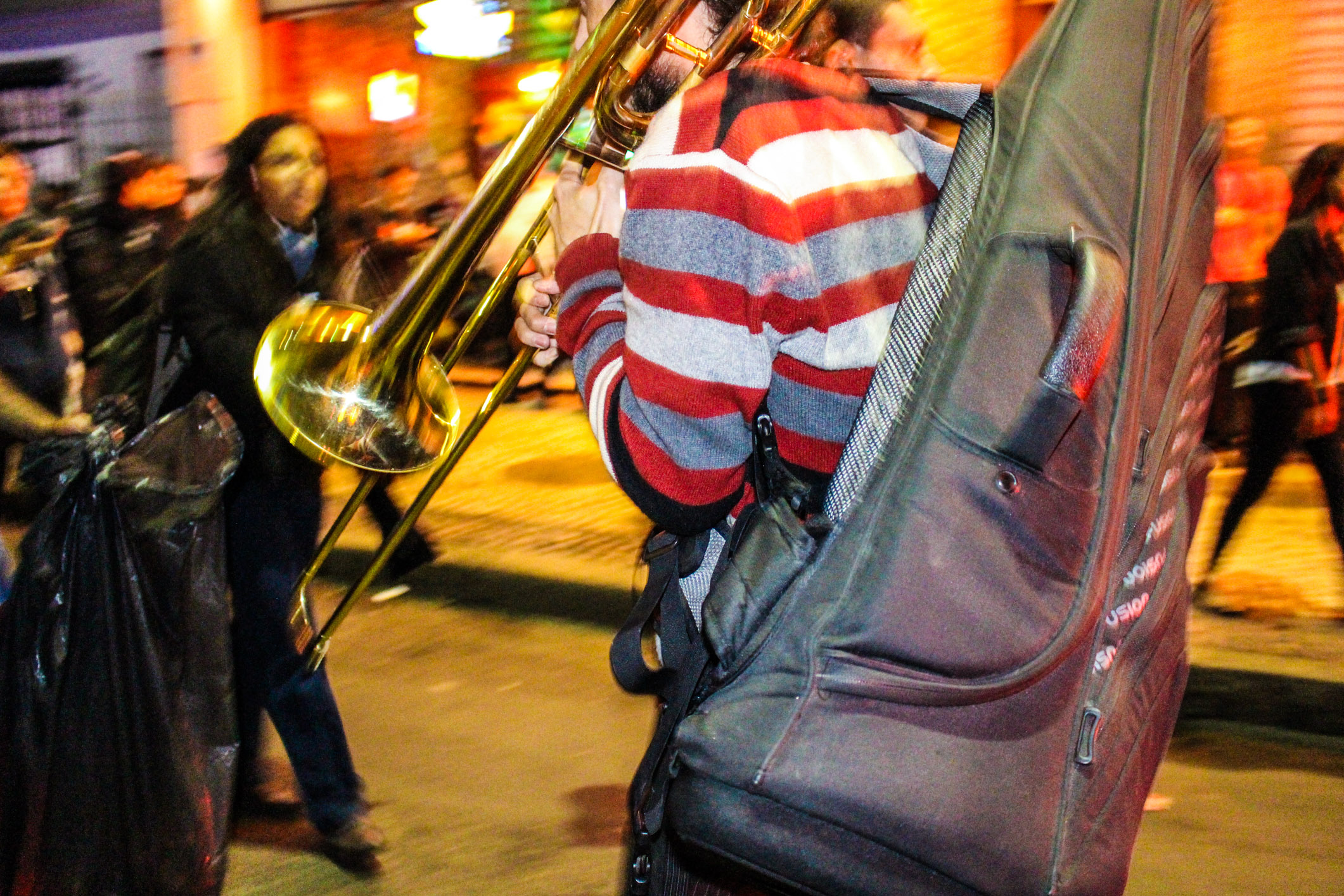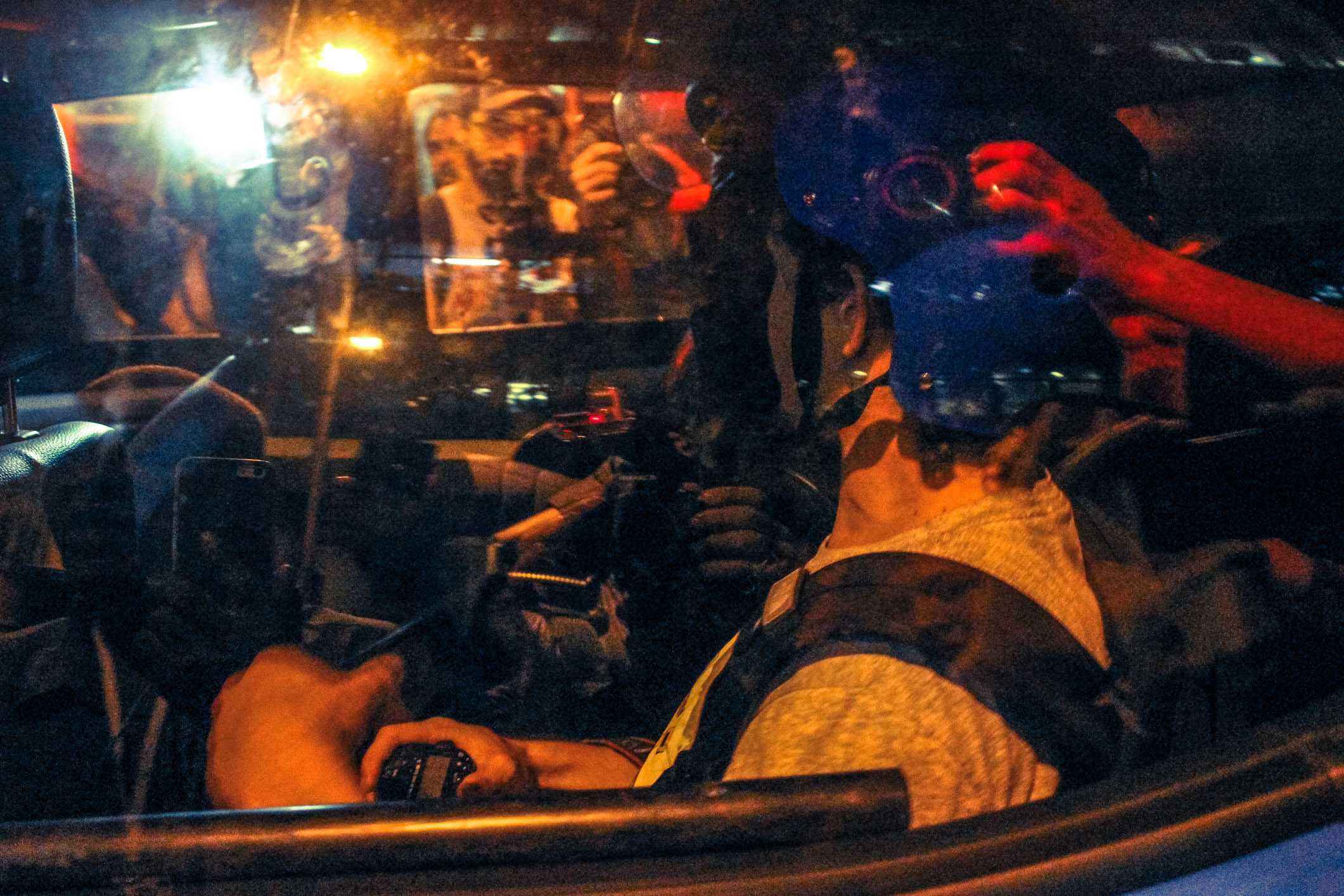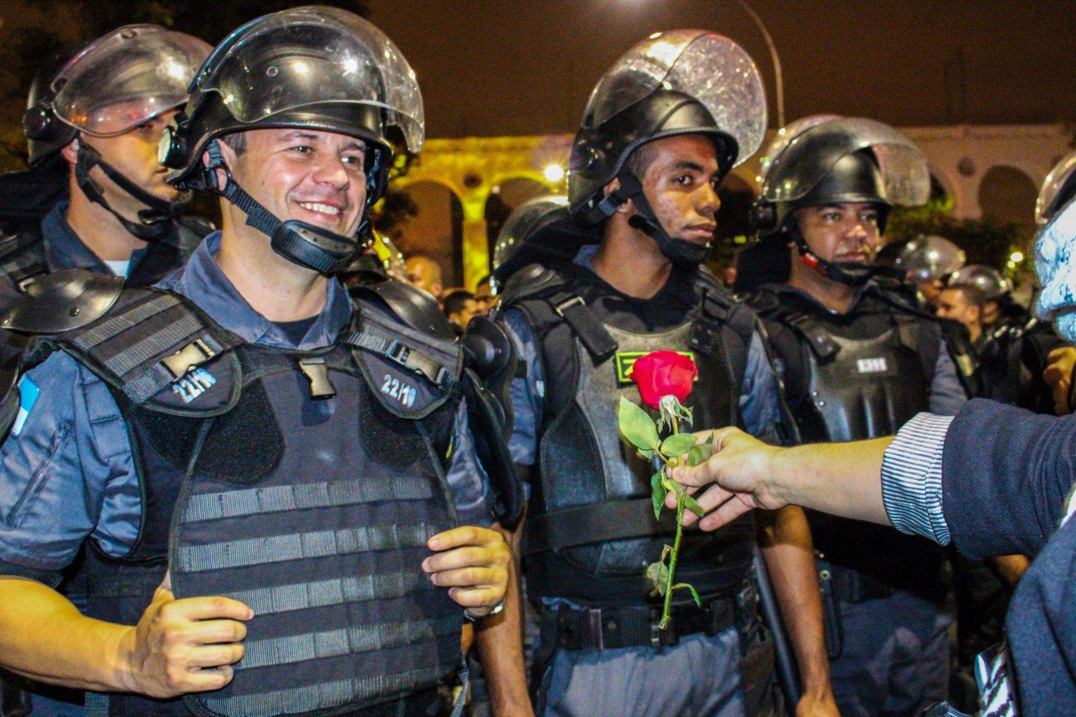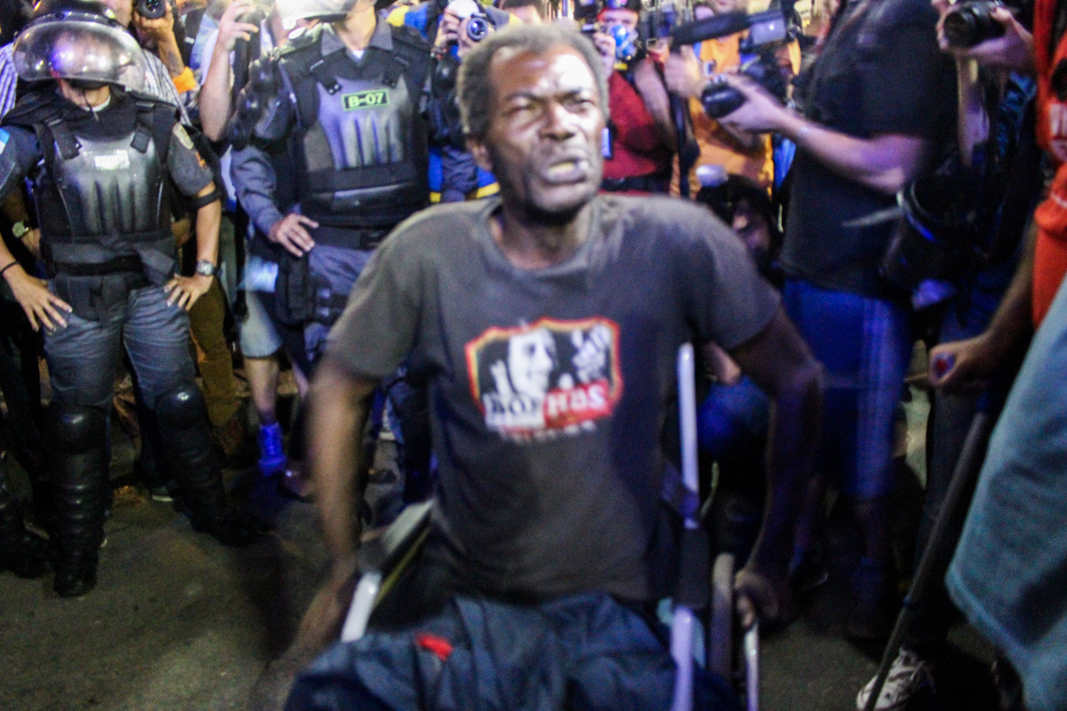 Chegando à Lapa, xs manifestantes deram várias voltas ao redor dos principais bares, cantando gritos de protestos e interagindo com os turistas. A polícia, por sua vez, além das revistas, passou a borrifar spray de pimenta em meio aos manifestantes, de forma que não percebessem o gesto, mas sentissem seus efeitos. Diante do aumento da tensão, a polícia efetuou mais uma série de detenções, muitas por desacato. Nesse cenário, um manifestante foi brutalmente agredido e derrubado no chão, enquanto um cadeirante, que passava pelo local e resolveu aderir ao protesto, recebeu um jato de Spray de pimenta diretamente em seu rosto. Como se não bastasse, a polícia ainda usou bombas de efeito moral e balas de borracha.