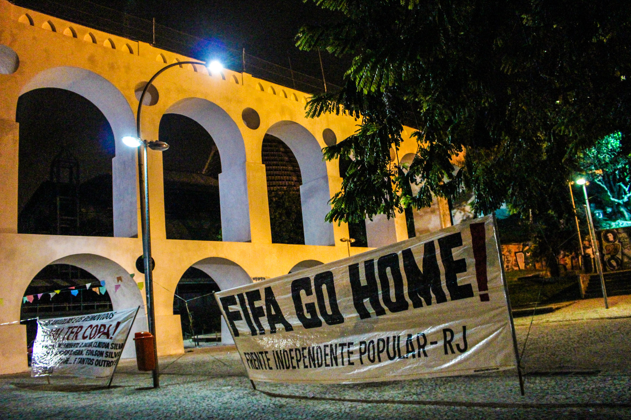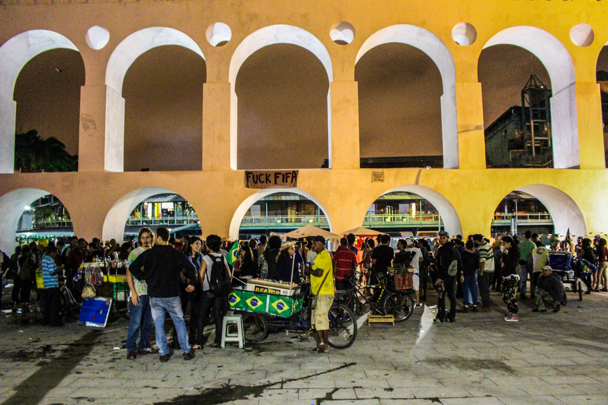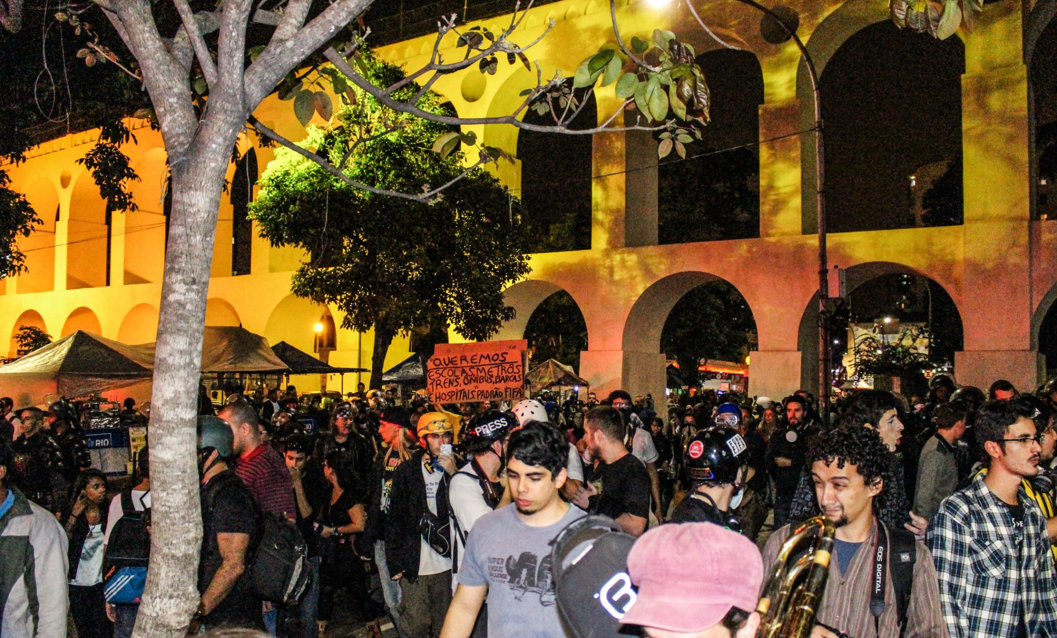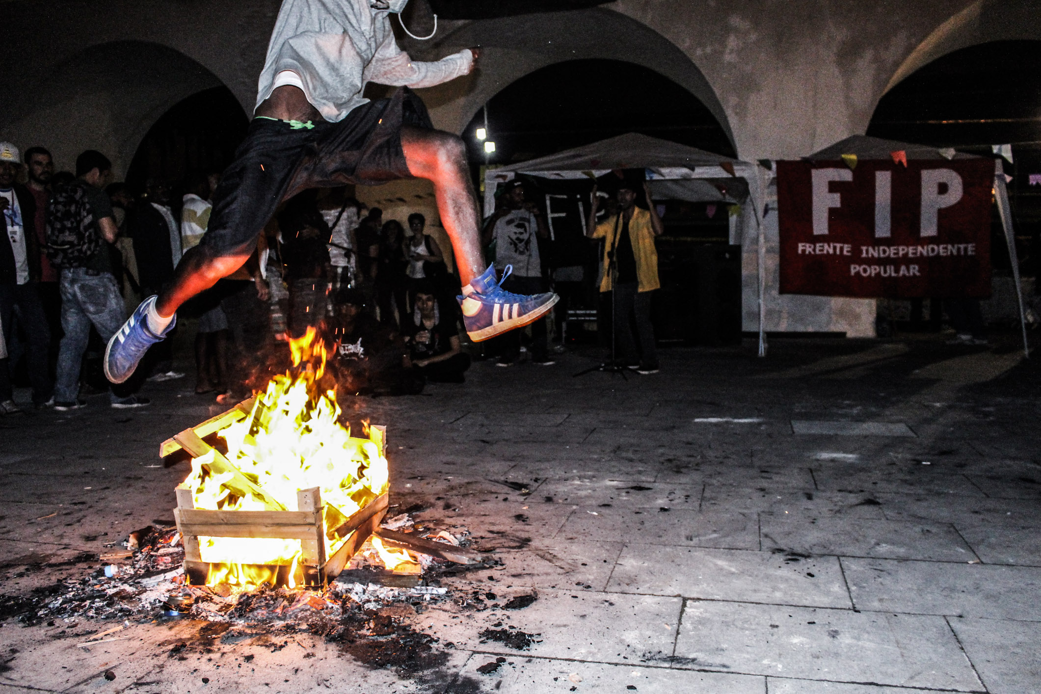 Nesta sexta-feira, 20 de junho, aconteceu no centro do Rio de Janeiro o ato 20J, em comemoração ao aniversário de um ano da manifestação que levou mais de um milhão de pessoas às ruas da cidade. Neste mesmo dia, a FIP (Frente Independente Popular) organizou uma festa junina embaixo dos arcos da Lapa, com direito a fogueira e doces típicos. A festa, além de também ser comemorativa, foi um protesto à proibição de realizações de festas juninas em Salvador, por imposição da lei da Fifa.