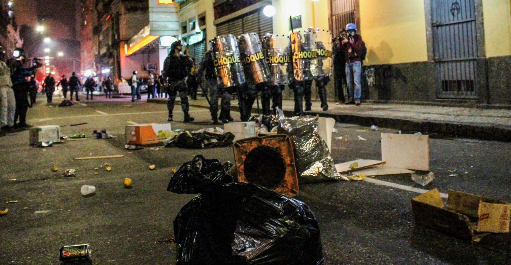 No total foram 12 detidxs. Dentre eles, um foi preso por ter direcionado um laser para o Helicóptero da Polícia Militar que sobrevoava o local; outrx foi levado por portar cápsulas de balas de borracha deflagradas pela polícia. Em relação a esse último caso, o jornal O Globo, mais uma vez, mascarou os fatos e noticiou, de forma irresponsável, que o jovem portava munição de arma calibre 12mm (calibre da munição de bala de borracha), dando a entender que o jovem carregava projéteis letais, ao invés de apenas cápsulas de bala de borracha.