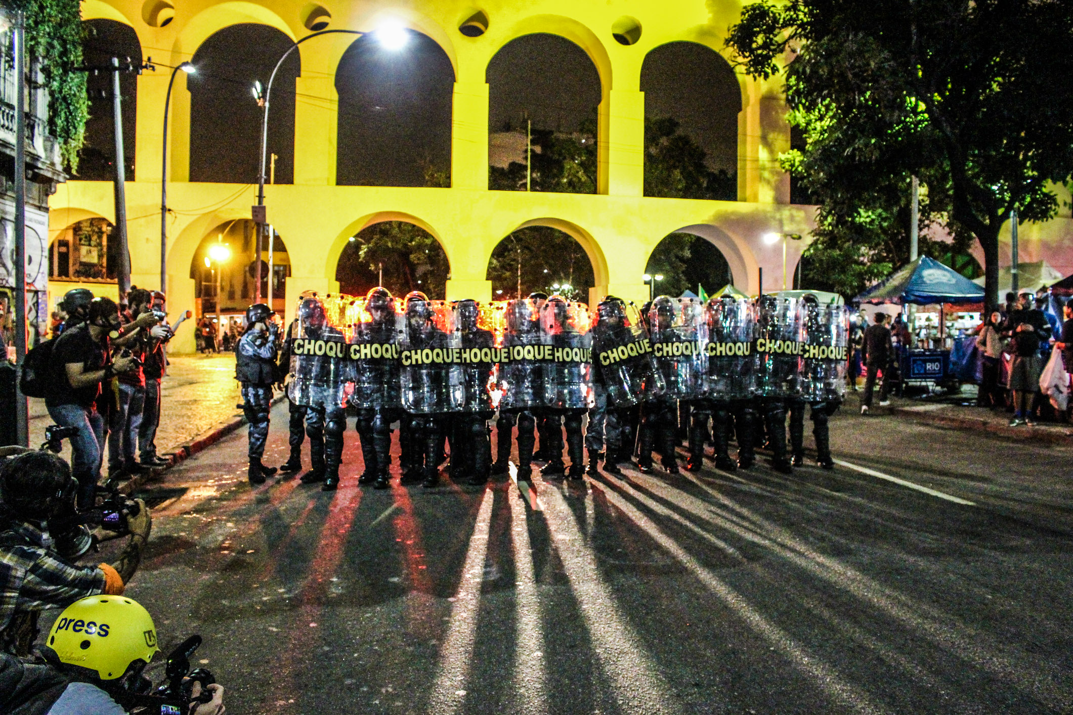 Partindo da Candelária, o ato seguiu em direção à Lapa, onde havia uma grande concentração de turistas, e deveria encontrar a festa junina da FIP. Durante todo o percurso, no entanto, a polícia continuou a fazer revistas, e mais um jornalista foi detido, tendo seu cartão de memória apreendido pela polícia.