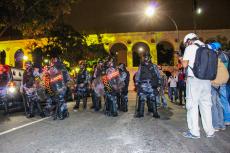 O Ato, marcado para 17h, na Candelária, passou a ser reprimido pela polícia antes mesmo de começar. Na concentração, xs manifestantes que chegavam iam sendo revistadxs, e quinze minutos antes do horário marcado para começar o ato, 2 pessoas já tinham sido detidas por portarem máscaras. Às 17h20 o número de detidos já chegava a 6, incluindo um jornalista, que por ter um carregador de Notebook na mochila, foi acusado de portar “material explosivo”. O objetivo das revistas, como sempre, era o de intimidar xs manifestantes, e fazer com que desistam de participar dos protestos populares. É uma clara perseguição aos movimentos sociais, reflexo de um estado opressor que se mobiliza para não ser contestado.